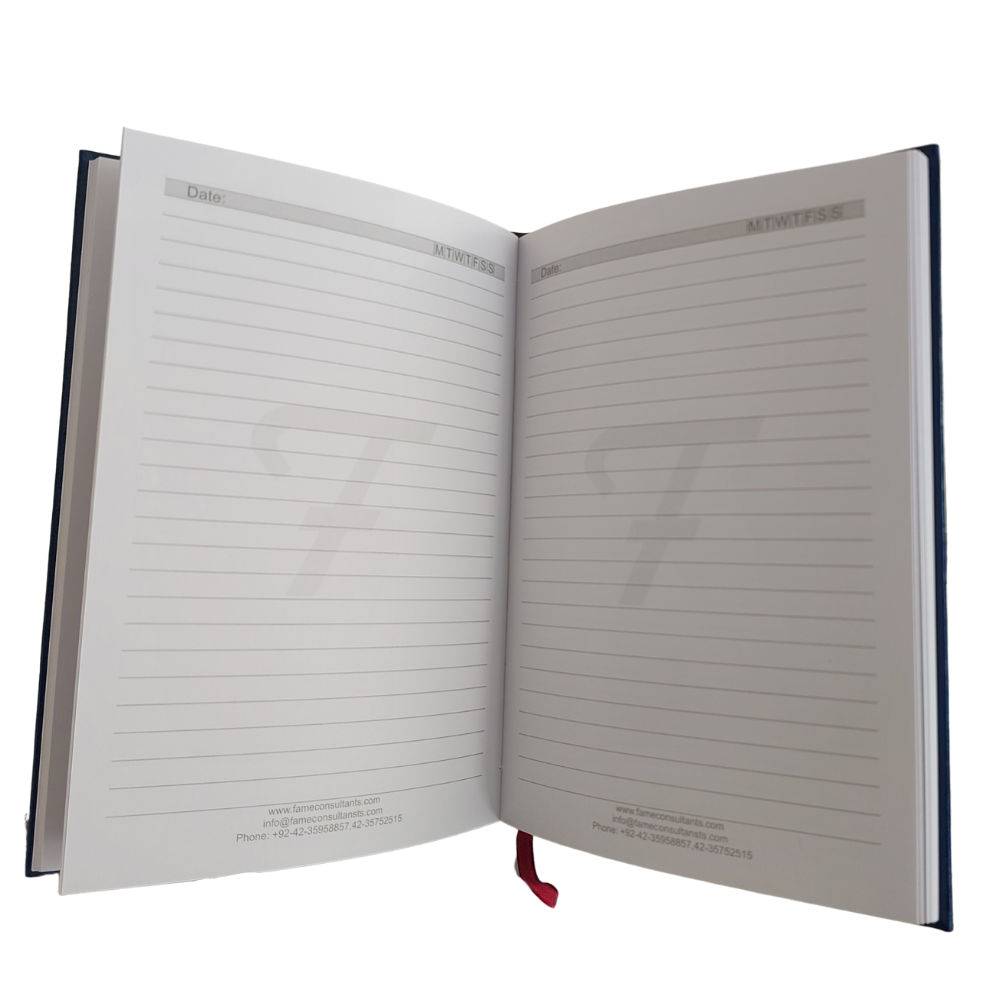 Premium custom diary manufacturing services from Pakistan’s leading producer since 1995. Personalized diary design, printing, and branding solutions for businesses and individuals. Complete customization options including layout, cover, content, and branding. Handcrafted in Lahore with international quality standards, trusted by corporations nationwide.